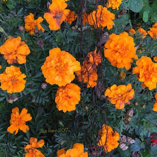 Back in my yard, I finished my foraging with a painted fern and a fading hosta leaf. All of these were exposed on cotton sateen that I treated with cyanotype chemicals. I sprayed them with very diluted washing soda around the edges, and plain water over all, covered them with glass, and put them out in the bright autumn afternoon sun.